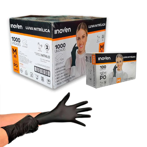 Luva Descartável Inoven de Látex Nitrílica Sem Pó Preta – 100 Unidades